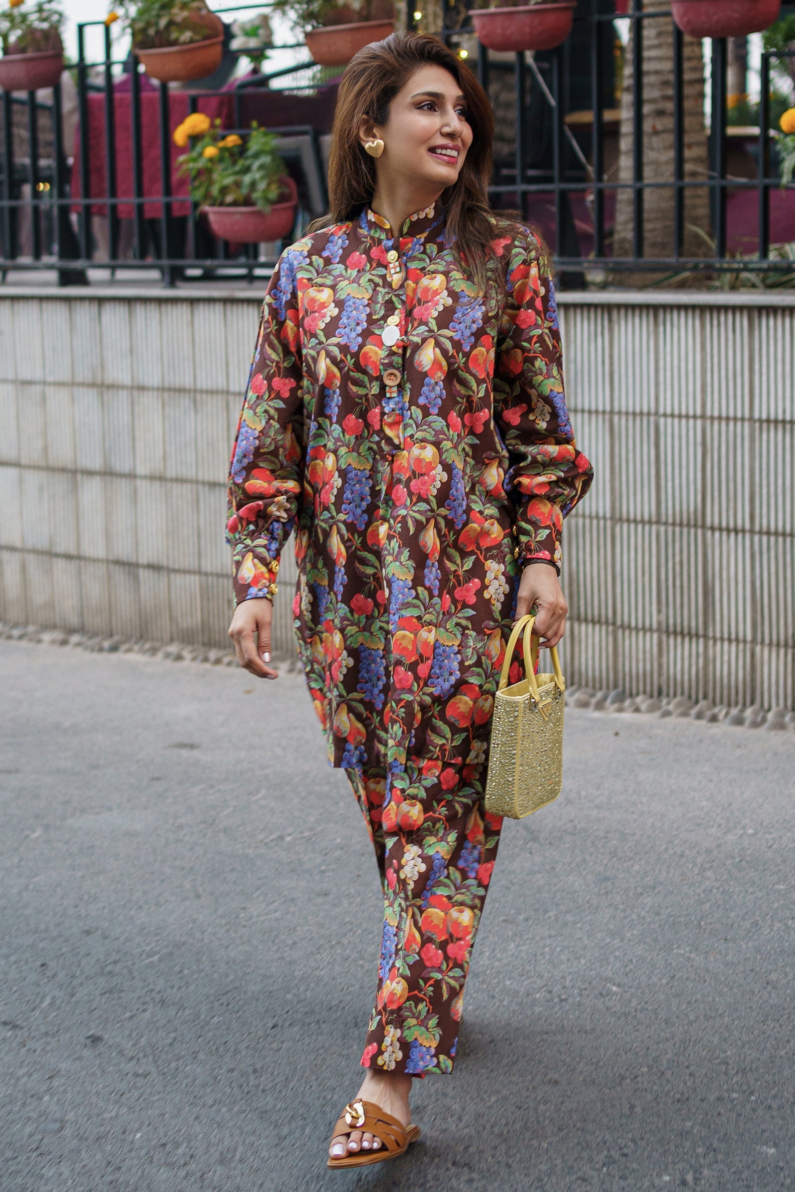 Get ready to own winter with "Citrus Glow", a two-piece khaddar suit that brings fresh, bold vibes to the season. The deep, earthy brown base gives off a cool, grounded feel, while the vibrant fruit print adds a burst of energy and color. This design captures the cozy warmth of winter with a modern twist—perfect for those who want to stay stylish while embracing the chill.
