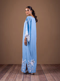 Zainab Chottani introduces the epitome of elegance and sophistication in this ice blue kaftan adorned with intricate cutwork detailing and delicate hand embroidery. Crafted to perfection, this kaftan exudes an aura of timeless beauty and refined charm. Flaunt your impeccable taste with the Ice Blue Kaftan and step into a world of timeless masterpiece.