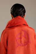 This embroidered kurta in orange has crystal detail and comes with an embroidered dupatta and cropped trousers.