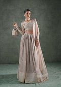In an exquisite ode to tradition, our celestially crafted Lehnga, 'Jahanara’ is rendered in Dove white chickan kari inspired embroidery. The grand paneled kalidar is intricately embroidered in accordance with quintessential workmanship with multi sequins, Paired with a tonal chiffon dupatta with elaborately embroidered borders and pallus, this ethereal silhouette shimmers with incandescent grace and timeless sophistication.