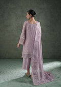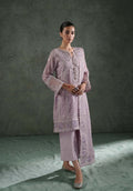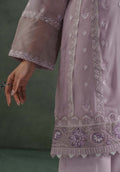 Drenched in the tranquil elegance of pastel Lavender lilac hues, 'AIZA’ manifests as a vision of ethereal beauty. Its delicate tulle canvas is adorned with glistening tilla embroidery and intricately woven threads in shades of sage, ivory, and periwinkle, complemented by lustrous pearls and sequin accents, with delightful touches of silver and gold. Harmoniously paired with tonal trousers and a resplendent dupatta, adorned with a meticulously embroidered border, this design exudes feminine charm and playful allure, making it the perfect choice for sophisticated daytime celebrations.
