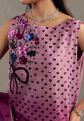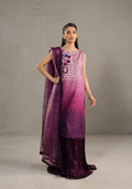 This masterful creation, meticulously hand-embellished, is crafted from the finest ethereal fabrics in shaded mulberry hues that evoke pure sophistication. The enchanting short shirt silhouette, adorned with opulent mulberry sequins accents, is a testament to refined artistry. Each floral motif is a masterpiece, brought to life with luminous sequins, delicate cut-dana and glistening crystals-every element woven together in a symphony of grandeur.Paired with a lavishly adorned organza dupatta and sumptuous silk crushed pants, Gianna is more than an ensemble; it is a declaration of timeless elegance and supreme luxury. Perfectly poised for wedding festivities, it stands as the quintessential choice for those seeking an unforgettable statement of style.