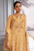 Embrace elegance with the Eva 3-piece embroidered net ensemble in a sophisticated sand color. The delicate net top with dainty floral embroidery is lined with soft cotton silk for comfort, paired with a dyed raw silk bottom for a refined look. The ensemble is completed with an embroidered chiffon dupatta, adding an ethereal touch. Perfect for formal occasions, this outfit exudes understated luxury.