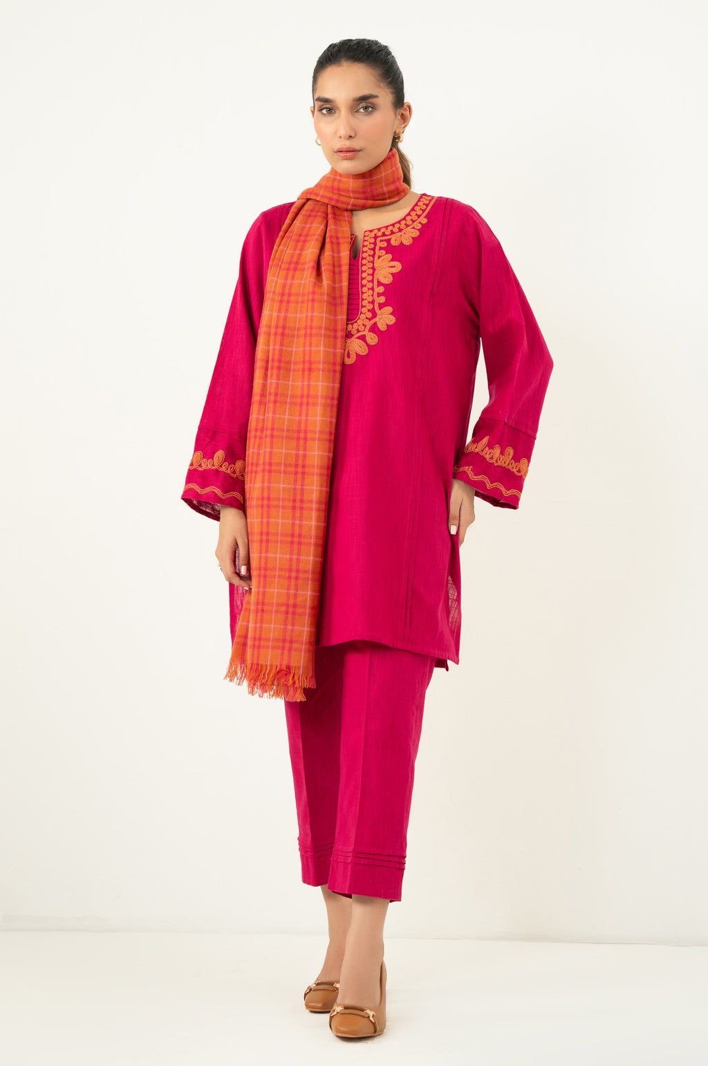 We at Khanum Jan are pleased to offer our customers a premium sewing service that prioritizes impeccable sewing styles and exceptional quality. Our team meticulously plans and sews dresses according to the brand shoots displayed on our website. However, it is important to note that brands often showcase certain design elements for illustrative purposes only, which may not be included in our dresses. Consequently, customers should anticipate minimal variations.